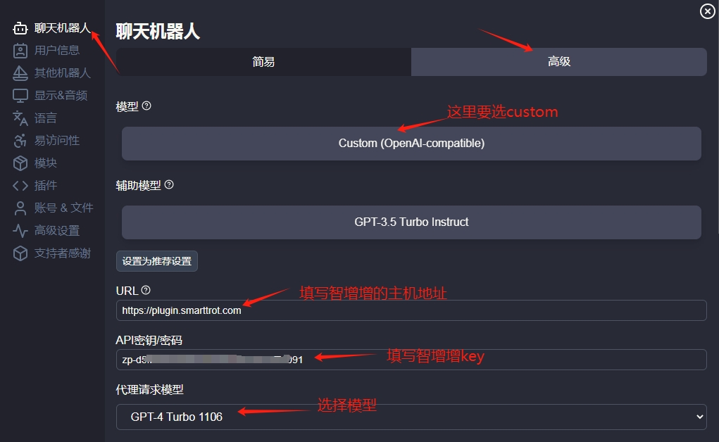 - 第3步:配置密钥。打开RisuAI,将上一步复制的密钥key和主机地址url填入,即可正常使用。注意配置的主机地址是: