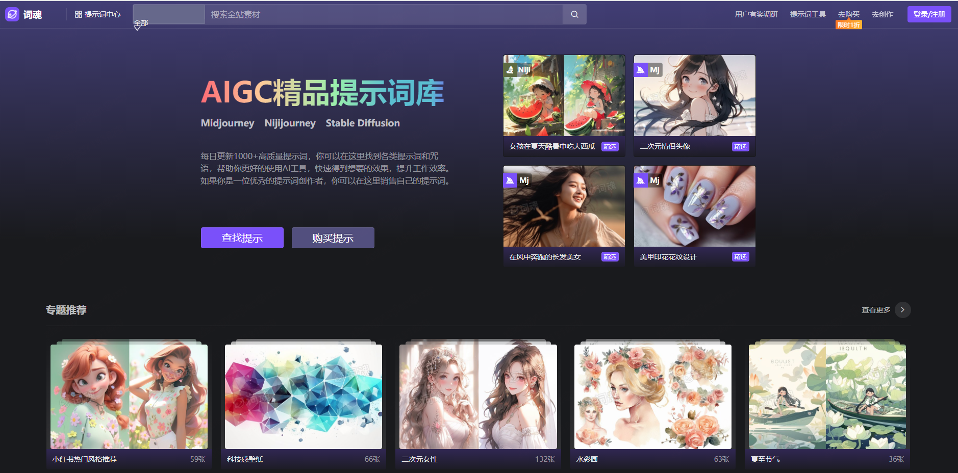 每日更新1000+高质量提示词,你可以在这里找到各类提示词和咒语,帮助你更好的使用AI工具,快速得到想要的效果,提升工作效率。如果你是一位优秀的提示词创作者,你可以在这里销售自己的提示词。
